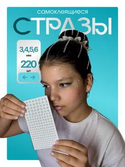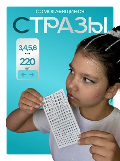 Стразы 220 шт самоклеящиеся прозрачные - серебристые