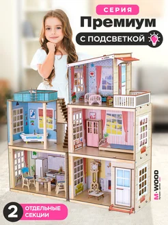 Большой кукольный домик с мебелью для Барби и подсветкой