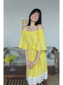 Платье летнее а силуэт с открытыми плечами