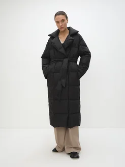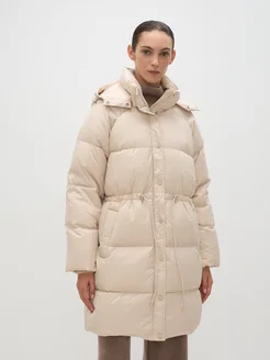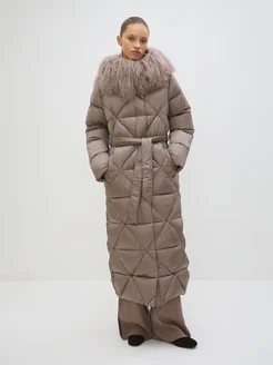 Пальто стеганое длинное с капюшоном натуральный пух перо