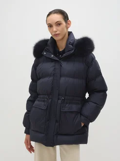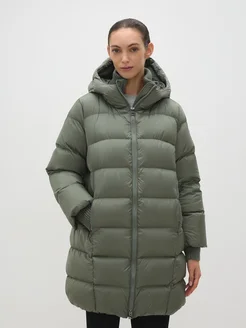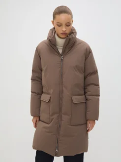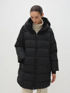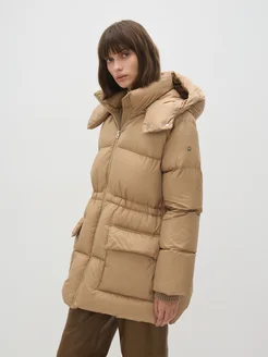 Пуховая куртка удлиненная с капюшоном натуральный пух перо