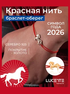 Браслет красная нить Лошадь, серебро 925 с позолотой