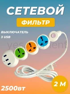 Электрический удлинитель сетевой фильтр с USB с выключателем