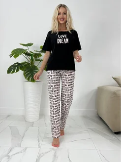 футболка черная брюки розовые DREAM