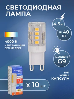 Светодиодная лампа капсула G9 4.5Вт 3000К набор 10 шт