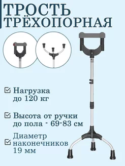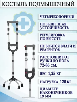 Костыль подмышечный 4-опорный под рост 155-185 см