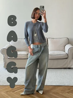 Джинсы багги широкие оверсайз с высокой посадкой прямые
