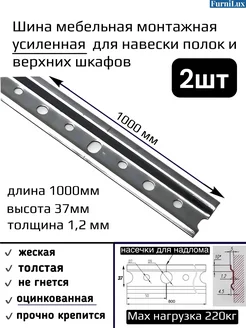 Шина мебельная монтажная планка для навески шкафа усиленная