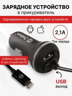 Зарядка для телефона USB Lightning 2,1А 10W автомобильная