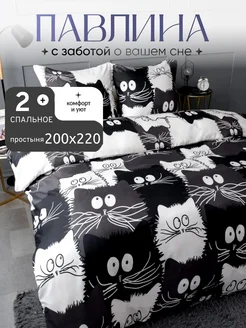 Постельное белье 2 спальное с европростыней котики