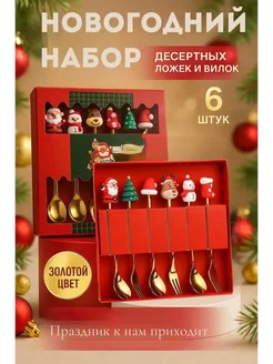 Новогодняя посуда набор столовых приборов на 3 персоны