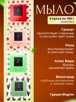 4 штуки Твердое мыло Гранат+Роза+Алоэ вера+Виноградное