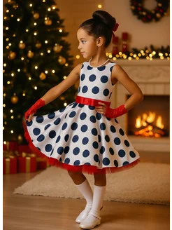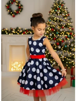 Платье нарядное пышное в горошек новогоднее
