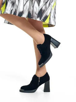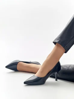 Туфли женские кожаные на устойчивом каблуке шпильке