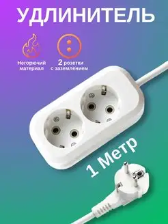 Удлинитель сетевой 2 розетки с заземлением, 1 метр, 16А