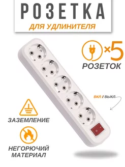 Удлинитель сетевой 5 розеток с заземлением, 1 метр, 16А