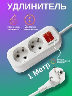 Удлинитель сетевой 2 розетки 1 метр