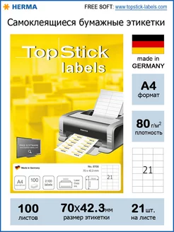 Самоклеящиеся этикетки бумажные белые матовые А4 70х42.3мм