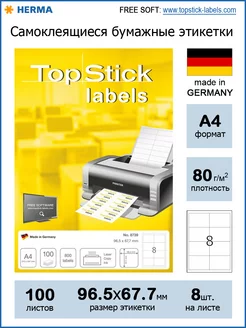 Самоклеящиеся этикетки бумажные матовые А4 96,5х67,7мм