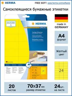 Самоклеящиеся этикетки бумажные желтые матовые А4 70*37мм