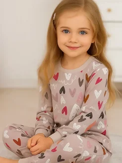 Пижама для девочки теплая с сердечками