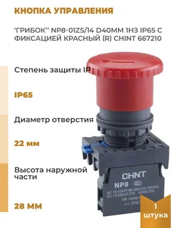 Кнопка управления "Грибок" NP8-01ZS 14 d40мм 1НЗ IP65 с