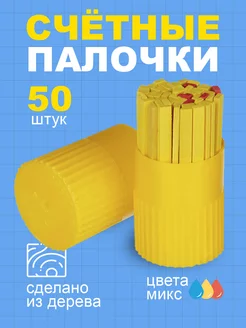 Счетные палочки 50 шт деревянные в пенале, цвет микс