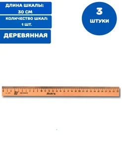 Линейка деревянная 30 см (3 штуки)