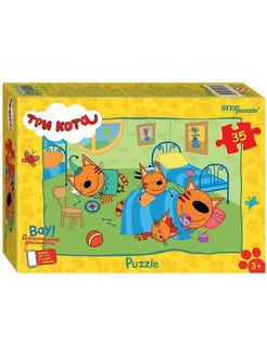 Детский паззл "Три кота", головоломка, 35 деталей мозаики