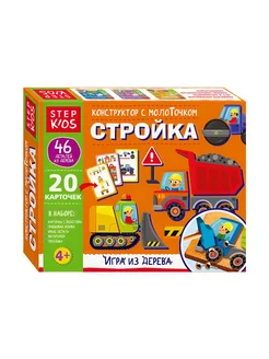 Развивающий деревянный конструктор "Стройка" с молоточком