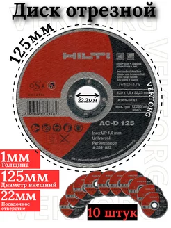 Диск отрезной 125х1х22.2 по металлу (10шт)