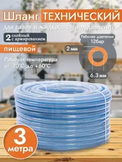 Шланг ПВХ технический пищевой армированный 6,3х2 3 метра