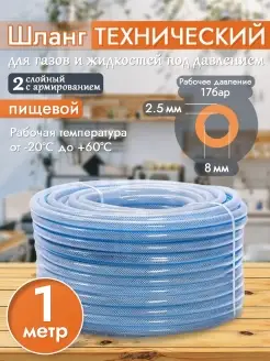 Шланг ПВХ технический пищевой армированный 8х2,5 1 метр
