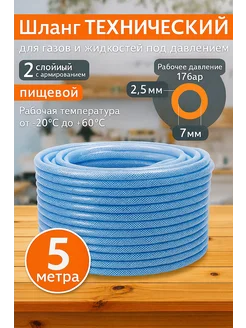 Шланг ПВХ технический пищевой армированный 7х2.5 5 метров