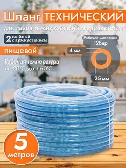 Шланг ПВХ технический пищевой армированный 25х4 5 метров