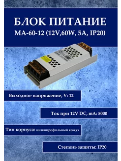 Блок питания MA-60-12 (12V,60W, 5A, IP20)