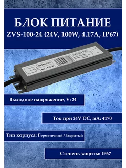 Блок питания ZVS-100-24 (24V, 100W, 4.17A, IP67)