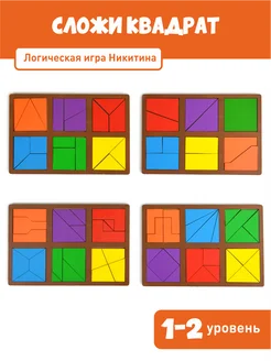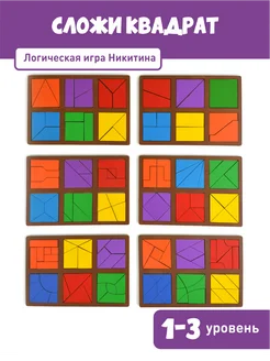 Набор логических игр Никитина Сложи квадрат, 1, 2, 3 уровень