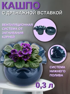 Кашпо для цветов и фиалок с дренажной вставкой 0,3 л