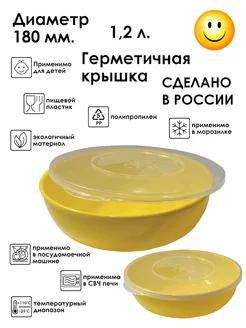 Миска контейнер пластиковый герметичная крышка 180мм, 1,2л
