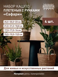 Набор 4 шт Кашпо для цветов плетеное с ручками