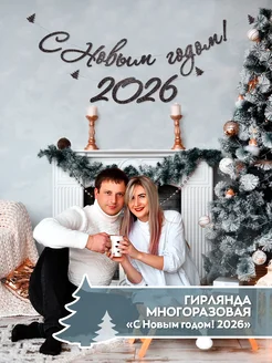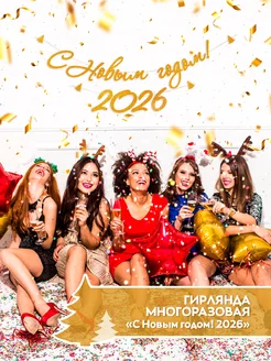 Гирлянда растяжка С Новым годом 2026 декор для праздника