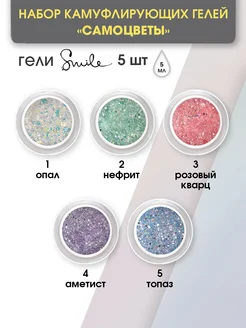 Набор гелей для наращивания с блестками, однофазный 5шт по 5…