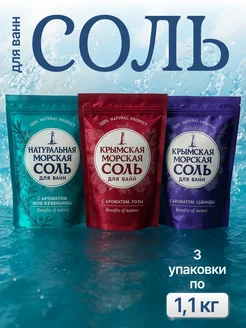 Набор морской соли для ванн Роза, Можжевельник, Лаванда