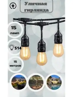 Уличная гирлянда 15 ламп, 15 метров, MFSLC18P