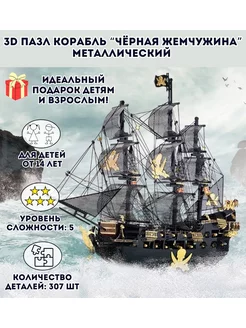 3D пазл металлический корабль "Чёрная жемчужина" модель