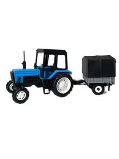 Трактор "МТЗ - 82" прицеп бортовой, синий, пластик 1 43