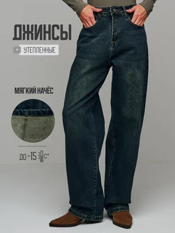 Джинсы утепленные широкие зимние с начесом