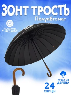 Зонт мужской трость, антиветер, черный, 24 спицы