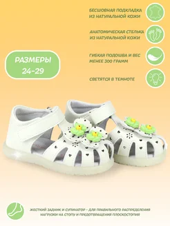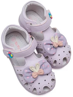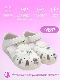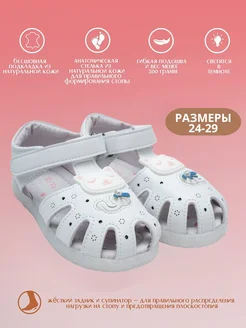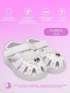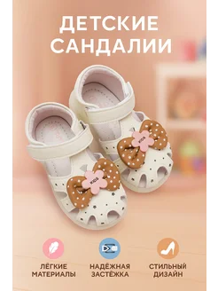 Детские белые сандалии с декоративным бантиком и застёжкой
